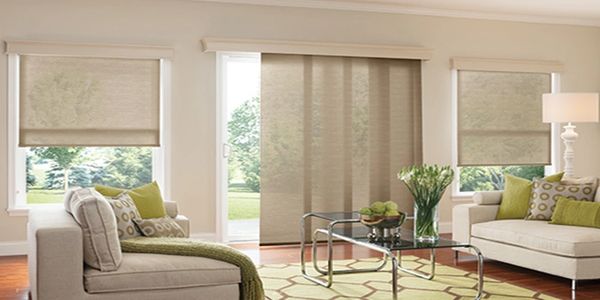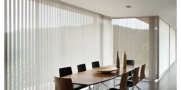 Persiana de tela con lienzos verticales en tela con apertura hacia los lados, fácil de limpia